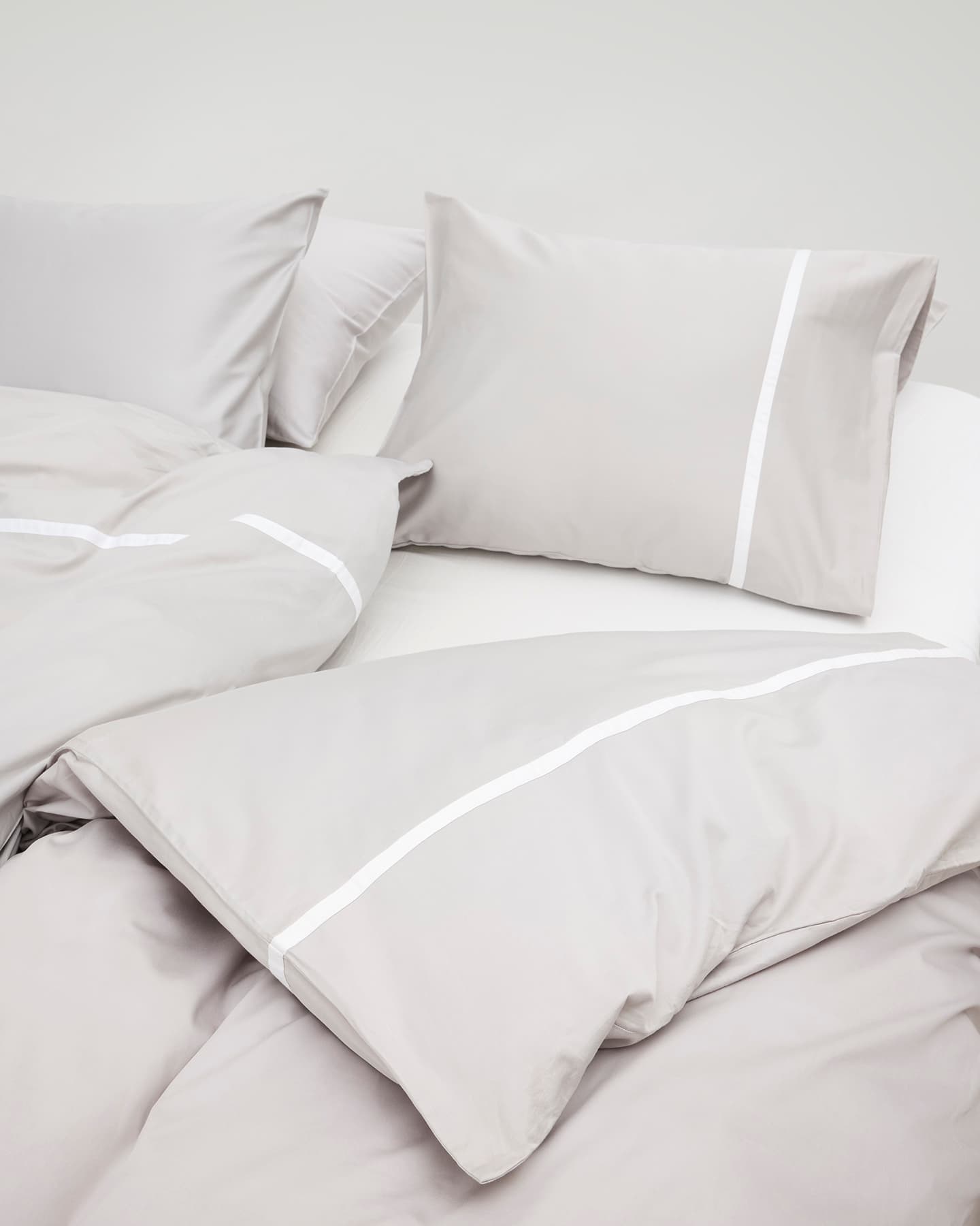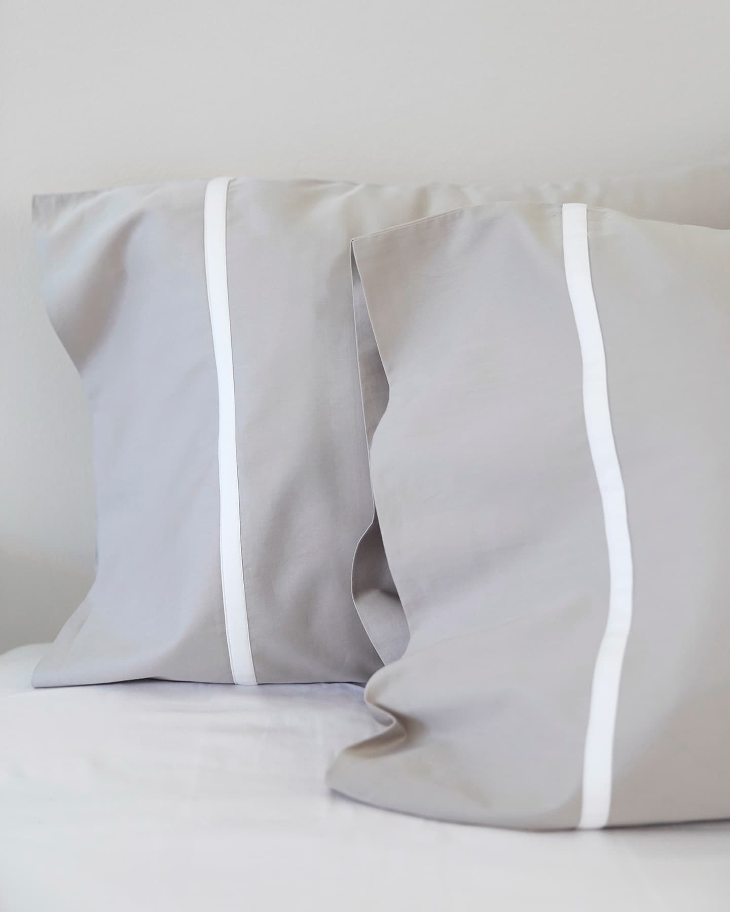 Gatt gefällt durch sein zeitloses Design; einziges Dekor ist ein dezentes Baumwollband in der Farbe Cloud White. Der Kissenbezug ist etwas breiter als das Kissen; dadurch entsteht ein interessanter, asymmetrischer Effekt.